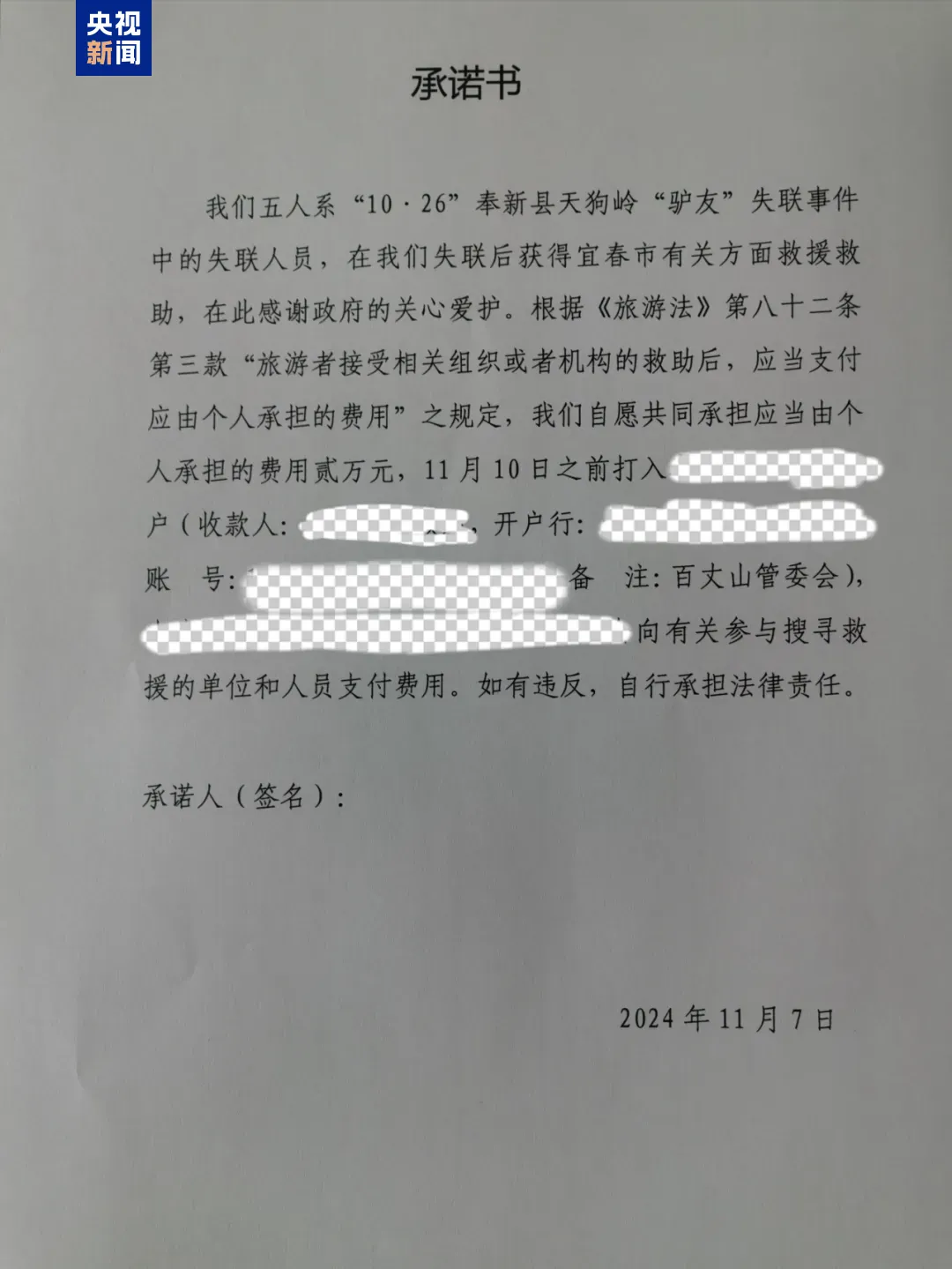 经过协商,综合考量旅游者过错程度、个人承担能力和悔过认错态度,5名“驴友”共同承担2万元救援费用,并签署了《具结悔过书》。